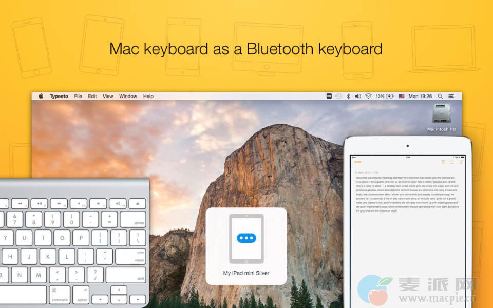 Typeeto是一款可以将你的Mac键盘通过蓝牙在你的iPad,iPhone,Apple TV,安卓设备等等上输入的软件。现在使用全尺寸键盘来输入文本,它会实时显示在设备屏幕上。