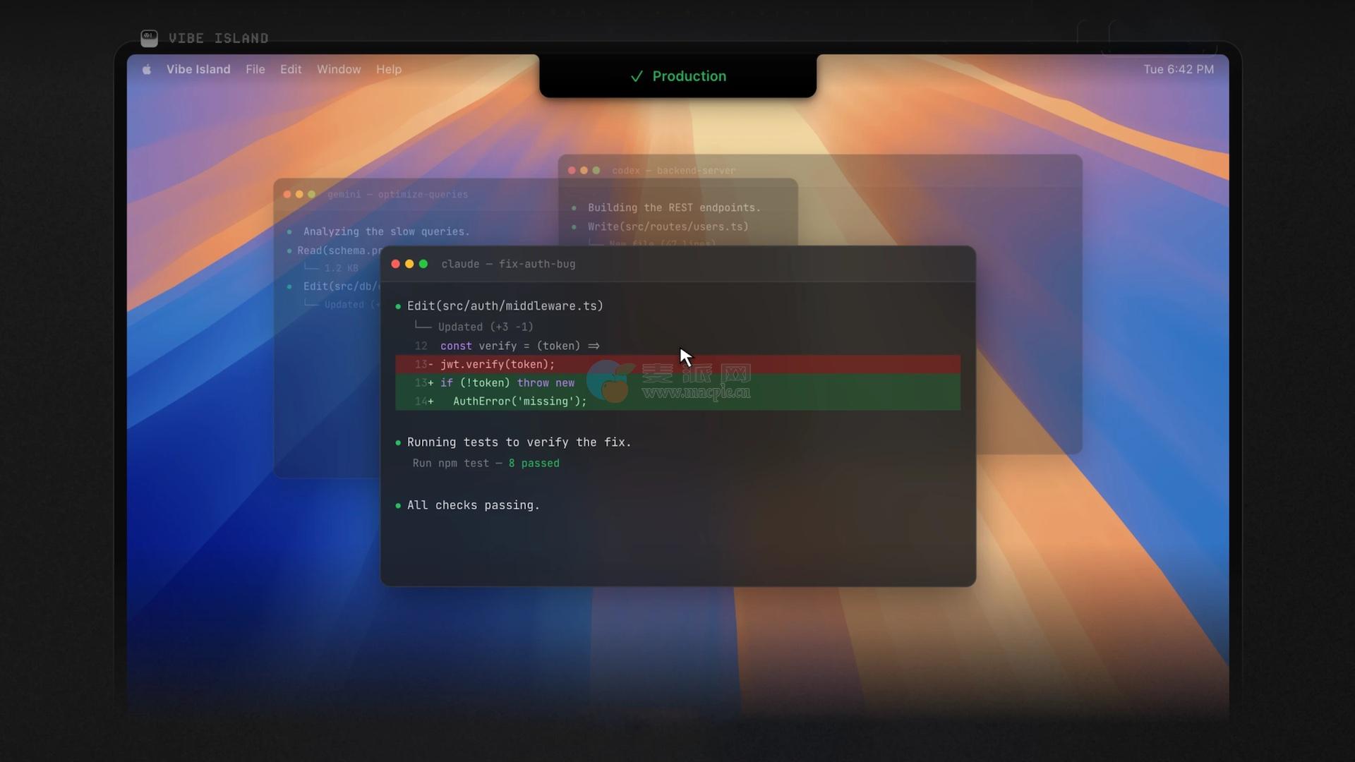Vibe Island是一个应用程序,它可以将您的Mac变成一个单一的控制中心,供AI代理在终端中操作。它允许您在Claude Code、Codex、Gemini CLI、Cursor和其他工具执行任务时不在窗口之间切换:跟踪工作进度、发放许可并直接从摄像机区域返回到所需会话。