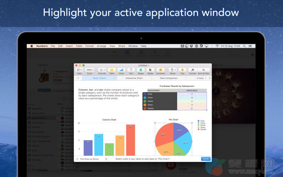• 能力突出的单窗口在一个应用程序,你必须打开,或在应用程序和其他程序的窗口调光,背景是打开所有窗户