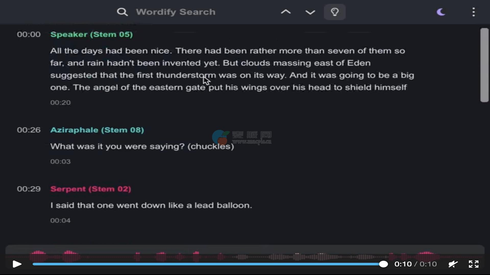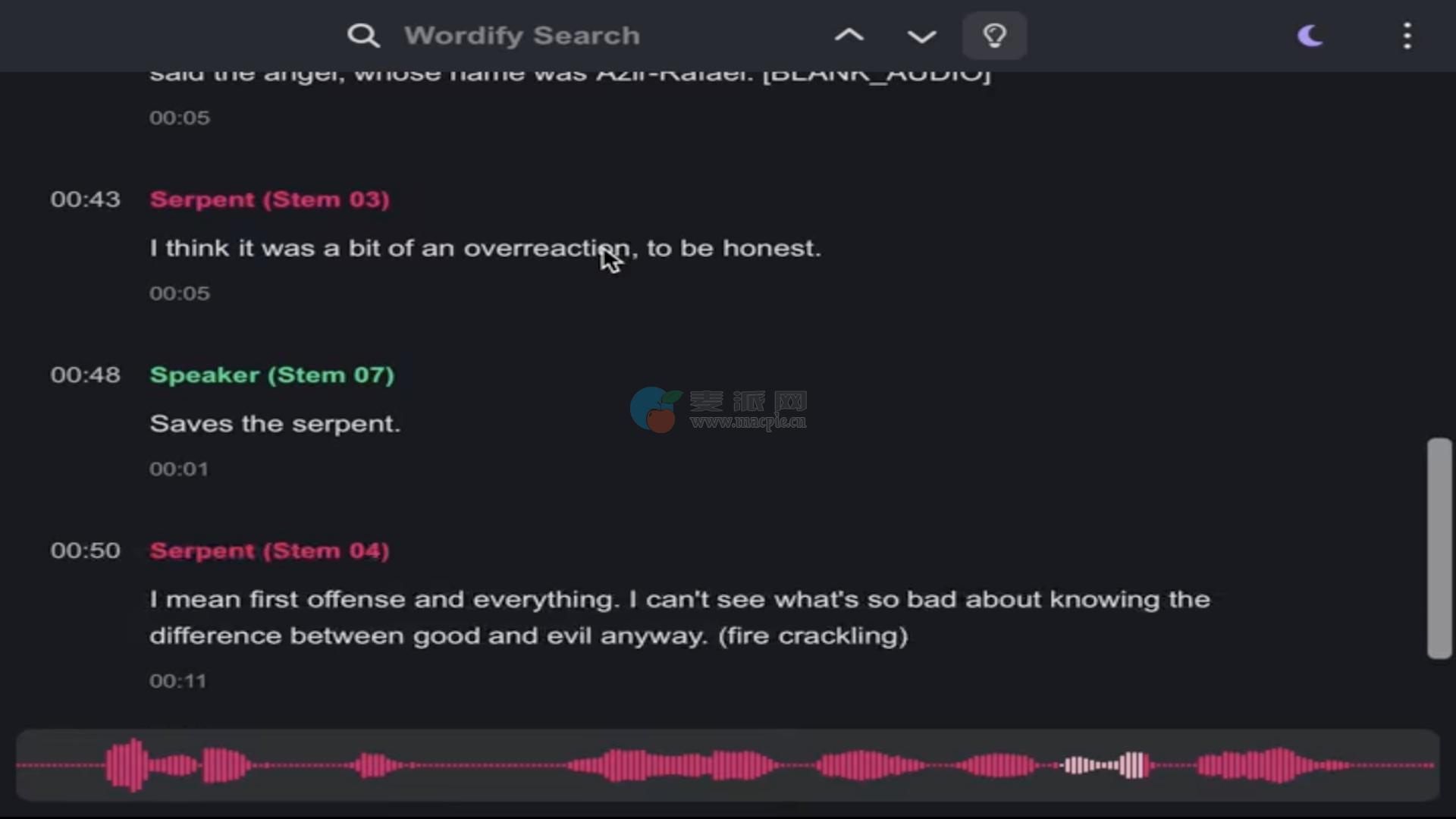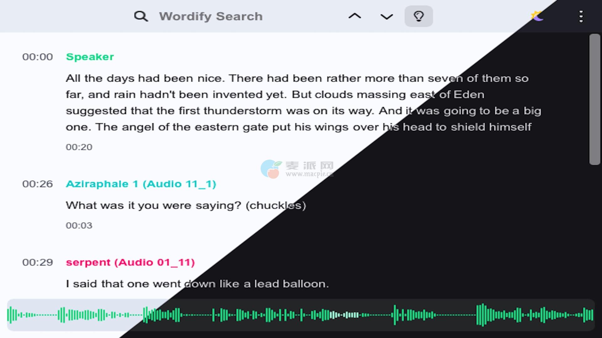 Wordify是一个ARA / VST 3插件。它以类似聊天的方式转录(语音到文本)从项目中选择的剪辑。点击一个单词,定位到该单词被说出的时间位置。智能搜索使快速查找片段中的口语单词成为可能。