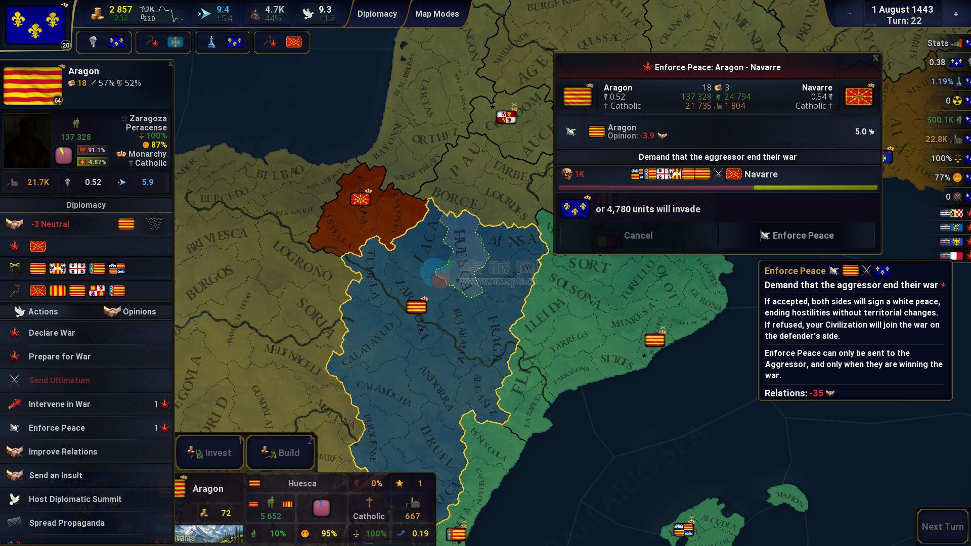 强制和平、干预战争、加入战争、AI军队控制(开/关)