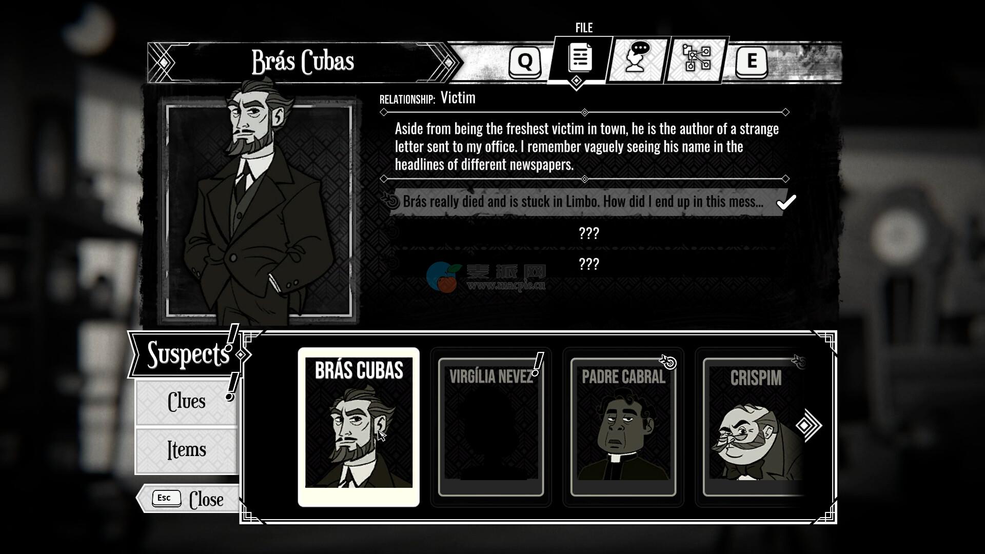 你的雇主是布拉斯·库巴斯,一名来自20世纪里约城的企业大亨。然而他的委托居然是调查自己的离奇死亡!即便已然往生,布拉斯却不让你轻易抽身,直到案情水落石出。
