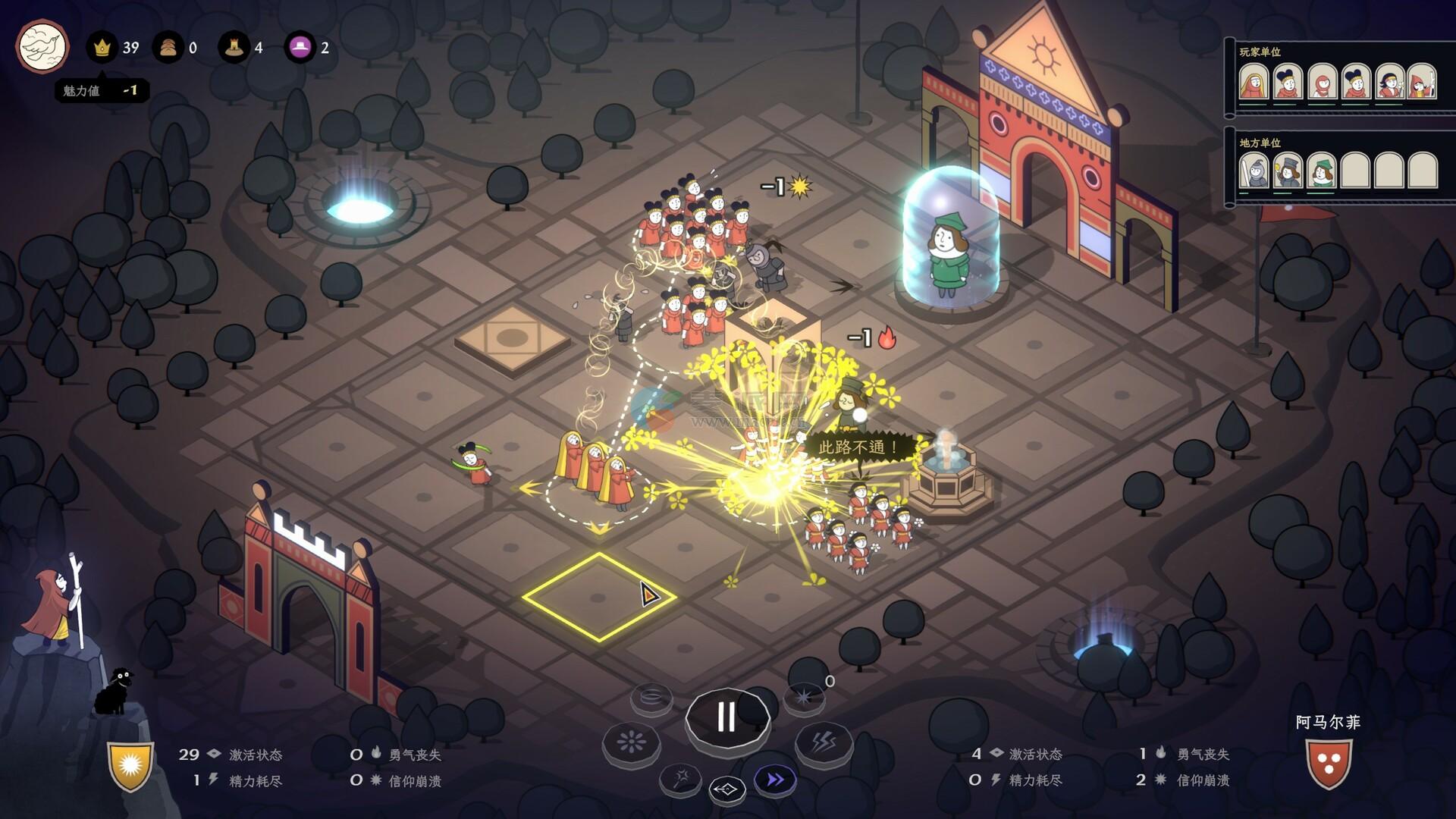 在旅途中,你的信徒将投入一场场小规模战斗。根据教义解锁并招募多达 16 种特色单位,巧用他们的技能与地形优势,排兵布阵、制定策略,体验融合即时战略与自走棋的独特玩法。借助圣人的神力加持部队或诅咒敌人,扭转战局,并在必要时直接操控单位,释放他们的最大潜力。