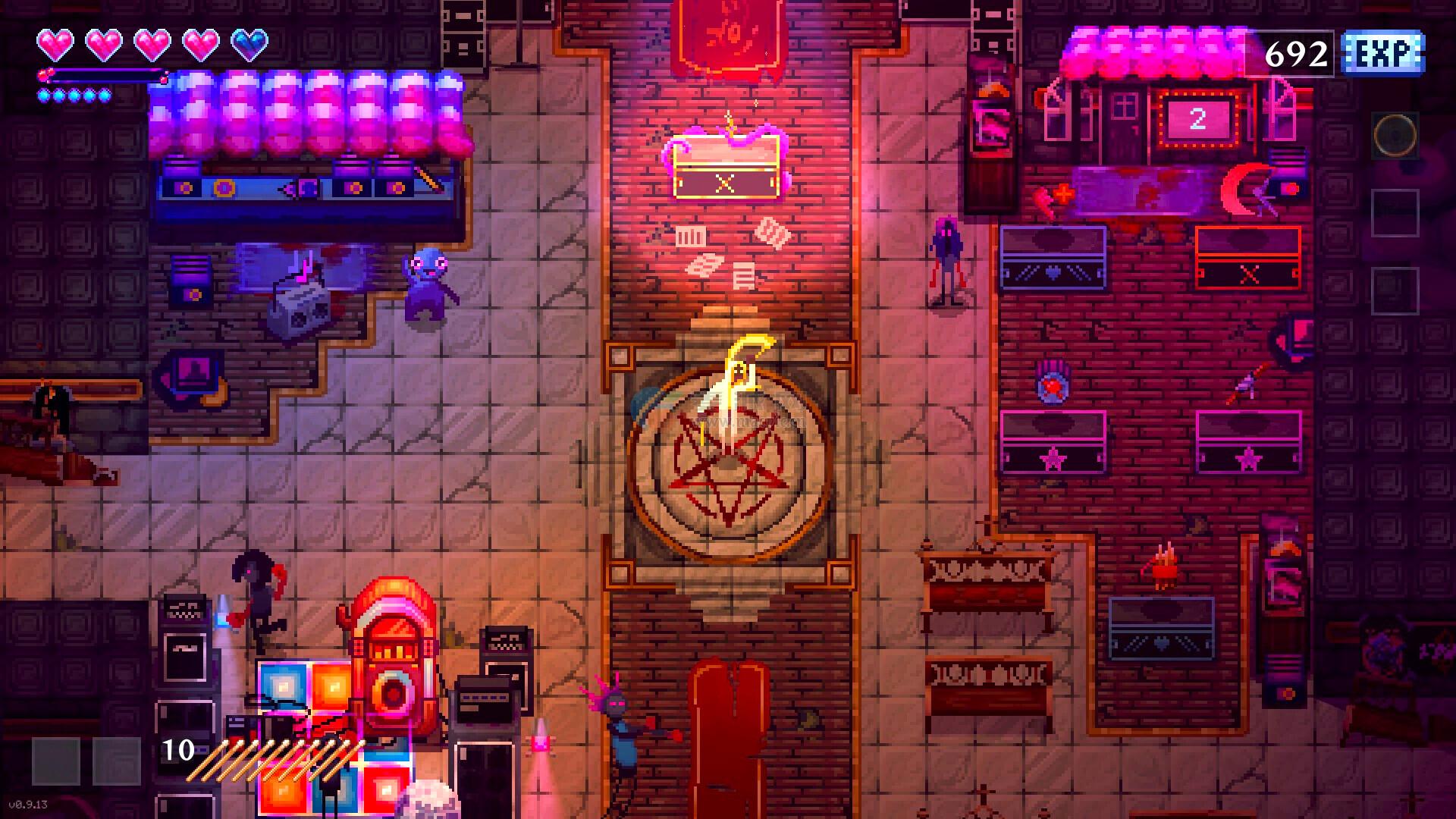 Bing Bong是已经被金属乐腐化的变态,但他是“好变态”。他的音像摊向你开放,用拨片去换点什么强化自己。作为一名专业鼓手,鼓棒永远不嫌多。某些强化可以赋予你携带超多鼓棒的能力,让你能多丢几根在敌人脸上!当然,鼓手不练腿也不行,不然双踩可真是要命。Bing Bong那里能让你跑的快点,赚的多点的强化当然也有!我们懂的!