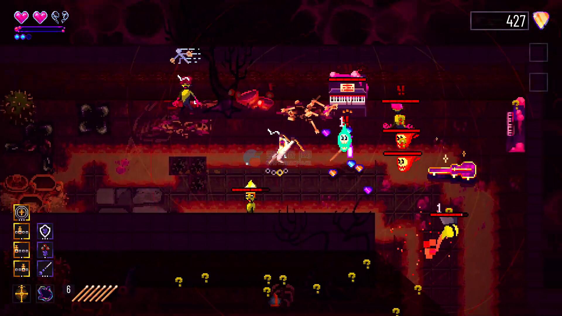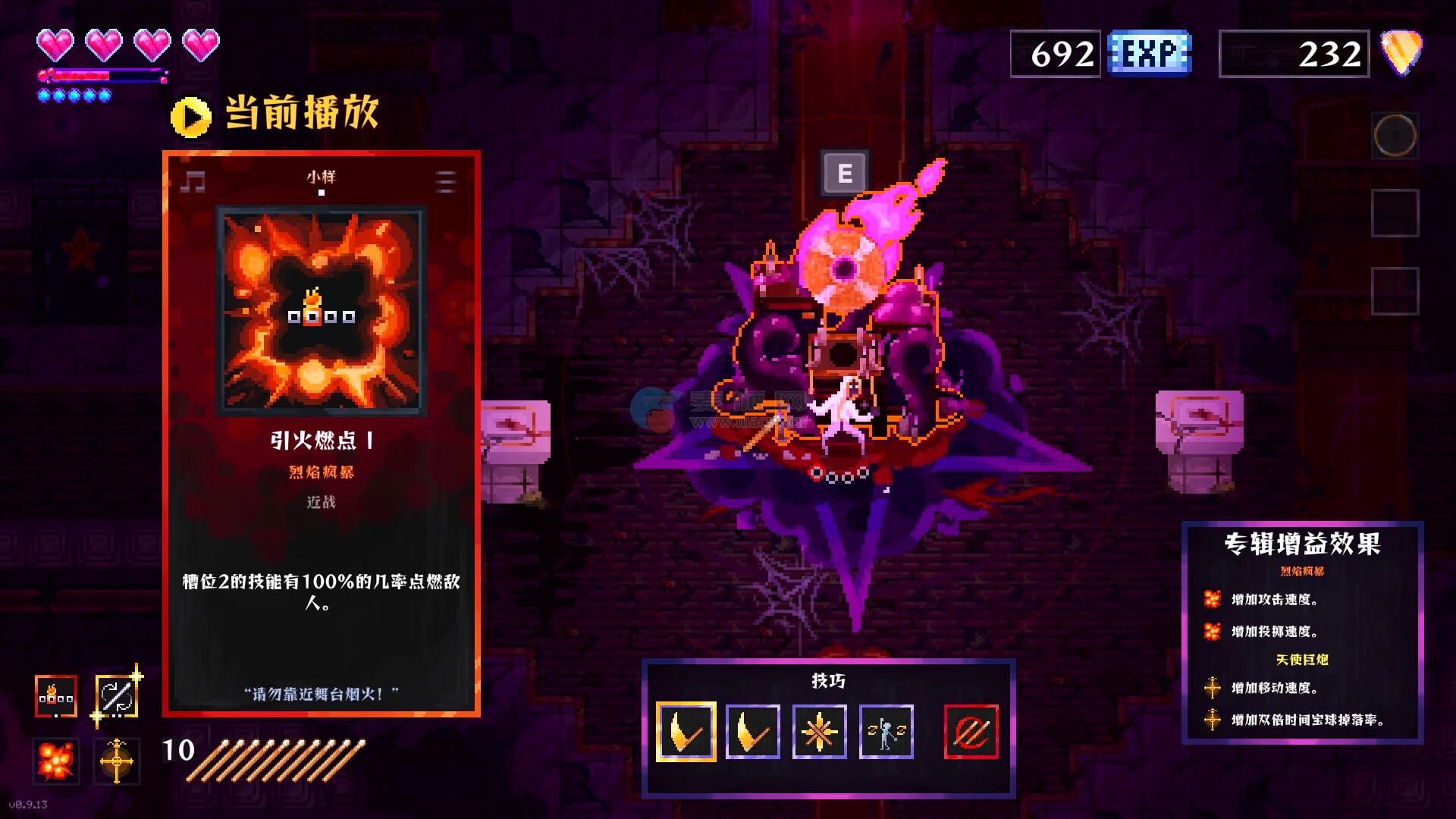 这些力量会为你的鼓棒上加上附魔,污油还是烈火?雷电或是圣光?当你确定选择后,会立刻面临一次由敌人组成的金属狂潮,突破他们的封锁即可逃进下个区域。这个循环最令人振奋的是,多种唱片力量之间的配合超乎想象!