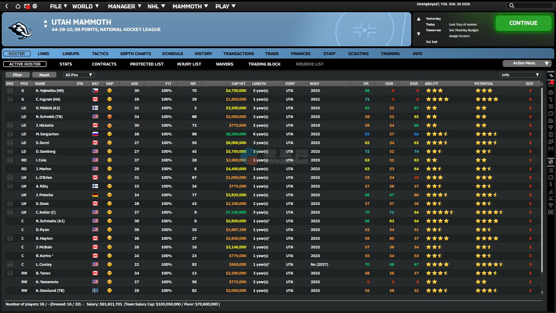 球员一代有了进一步的改进,超级明星变得越来越少,但增加了出现一代级人才的可能性,他们最终(如果一切顺利)将与冰球历史上最好的球员站在一起