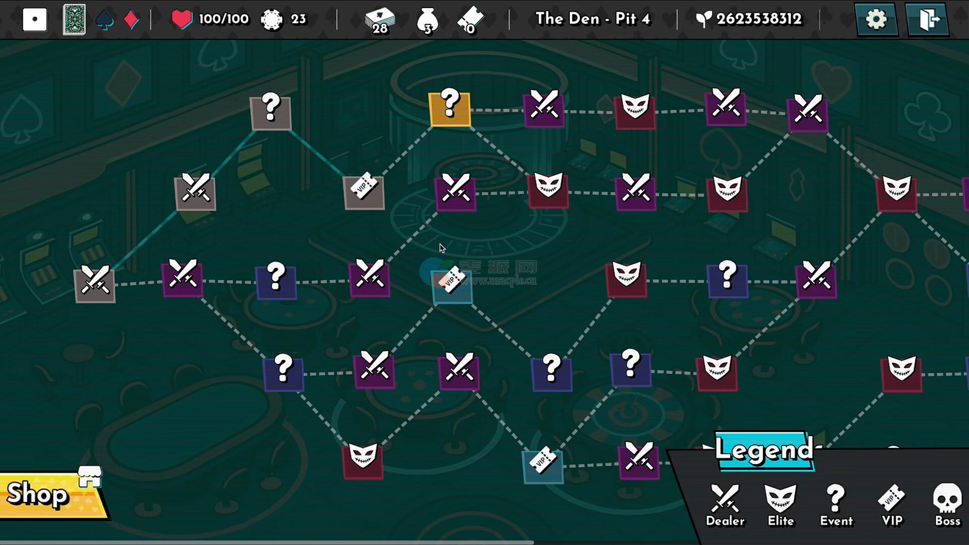 踏入一个不断变化的赌场迷宫。每个地图都是程序生成的,充满了秘密事件、使用作弊牌组的发牌员以及难以预测的挑战。每一局游戏都截然不同,确保了无尽的重玩性和战略深度。