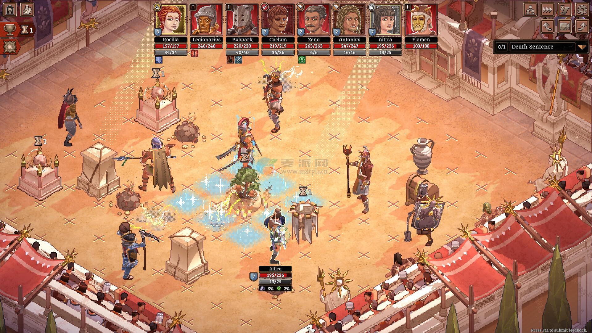 在回合制竞技场战斗中,引领你的角斗士队伍奋勇杀敌。你需要招募新兵、勤加训练、甚至必要时为荣光牺牲战士。但请记住,角斗士终究是肉体凡胎,如果倒在战场上,就永远离去了……不过他们的事迹会继续流传。